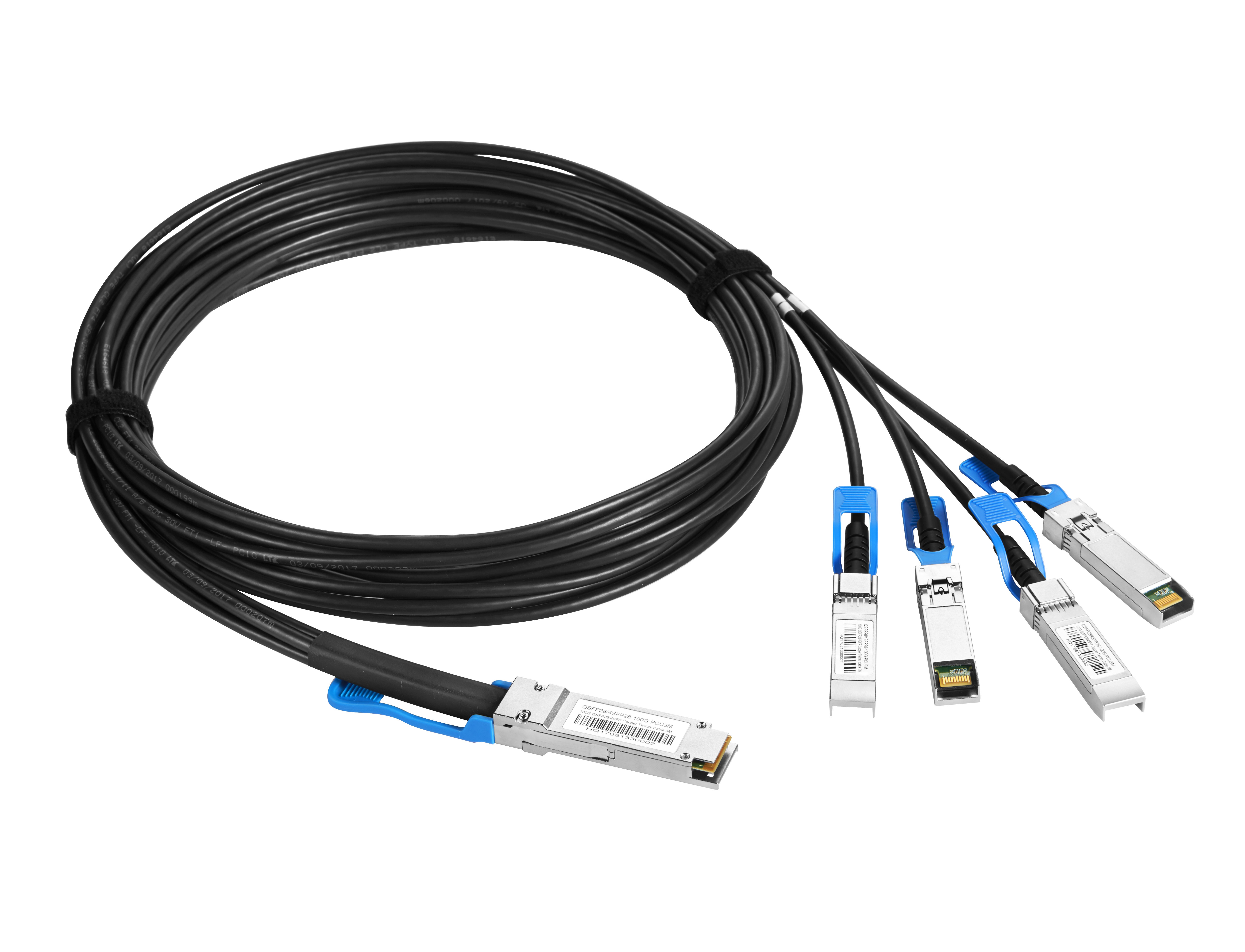 QSFP28 passive copper cable assembly feature eight differential copper pairs,providing four data transmission channels at speeds up to 28Gbps per channel,and meets 100G Ethernet,25G Ethernet and InfiniBand Enhanced Data Rate(EDR) requirements.Available in a broad rang of wire gages-from 26AWG through 30AWG-this 100G copper cable assembly features low insertion loss and low cross talk.